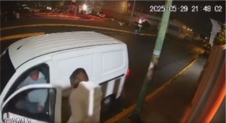 La noche del jueves el trabajador de una paquetería fue asaltado en calles del municipio de Tecámac, Estado de México, el momento fue captado por una cámara de seguridad donde se observa como dos sujetos lo amagan para quitarle su camioneta y le disparan en la pierna antes de escapar.